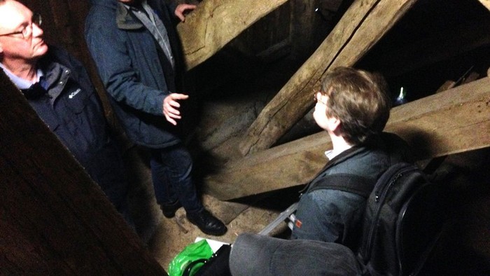 Woher das Holz kommt, kann man noch nicht genau sagen, so Heiko Seidel. Die Stützen sind etwa 30 mal 30 Zentimeter dick und aus bester Eiche. Unter Umständen sei das Holz „geflößt“, das bedeutet auf dem Wasserweg angeliefert, worden, dann könnte es zum Beispiel aus dem Baltikum kommen. Dies wird sich bei den noch nicht abgeschlossenen Untersuchungen vielleicht noch herausfinden lassen.