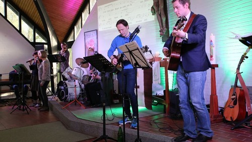 Beten2 schlug mit ihrem Musikalischen Gottesdienst in der Geestkirche Sarzbüttel eine Brücke zwischen den beiden Traditionen. Der Gottesdienst folgte der Lutherischen Form: Eröffnung und Anrufung, Verkündigung und Bekenntnis, Sendung und Segen. Bis auf die Bibellesung war jeder Part musikalisch gestaltet mit leisen, instrumentalen Klängen für das stille Gebet, mit Psalm und Loblied, mit einer offenen Fürbitte und dem gesungenen Vater-Unser bis hin zum Segen, der der Gemeinde musikalisch mitgegeben wurde. Bewusst bediente sich die Gruppe dabei moderner Medien: Die Texte wurde per Beamer an die Wand geworfen, die Band war professionell ausgeleuchtet und technisch ausgesteuert.