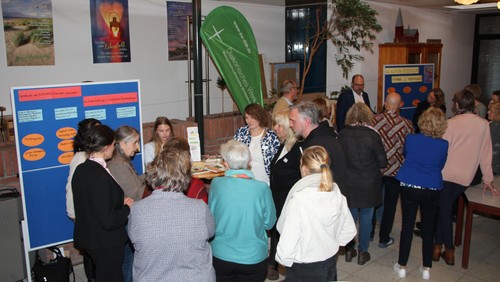 Nach Berichten aus den einzelnen Beratungsbereichen des DW gab es für die Synodalen an fünf Infotischen die Möglichkeit, im Rahmen eines World Cafés Themen zu vertiefen und weitere Informationen zu bekommen – neben den Beratungsstellen der Diakonischen Werkes waren hier auch das Kinderschutzzentrum und das Diakoniewerk Kropp (Pflege) mit spannenden Themen vertreten.