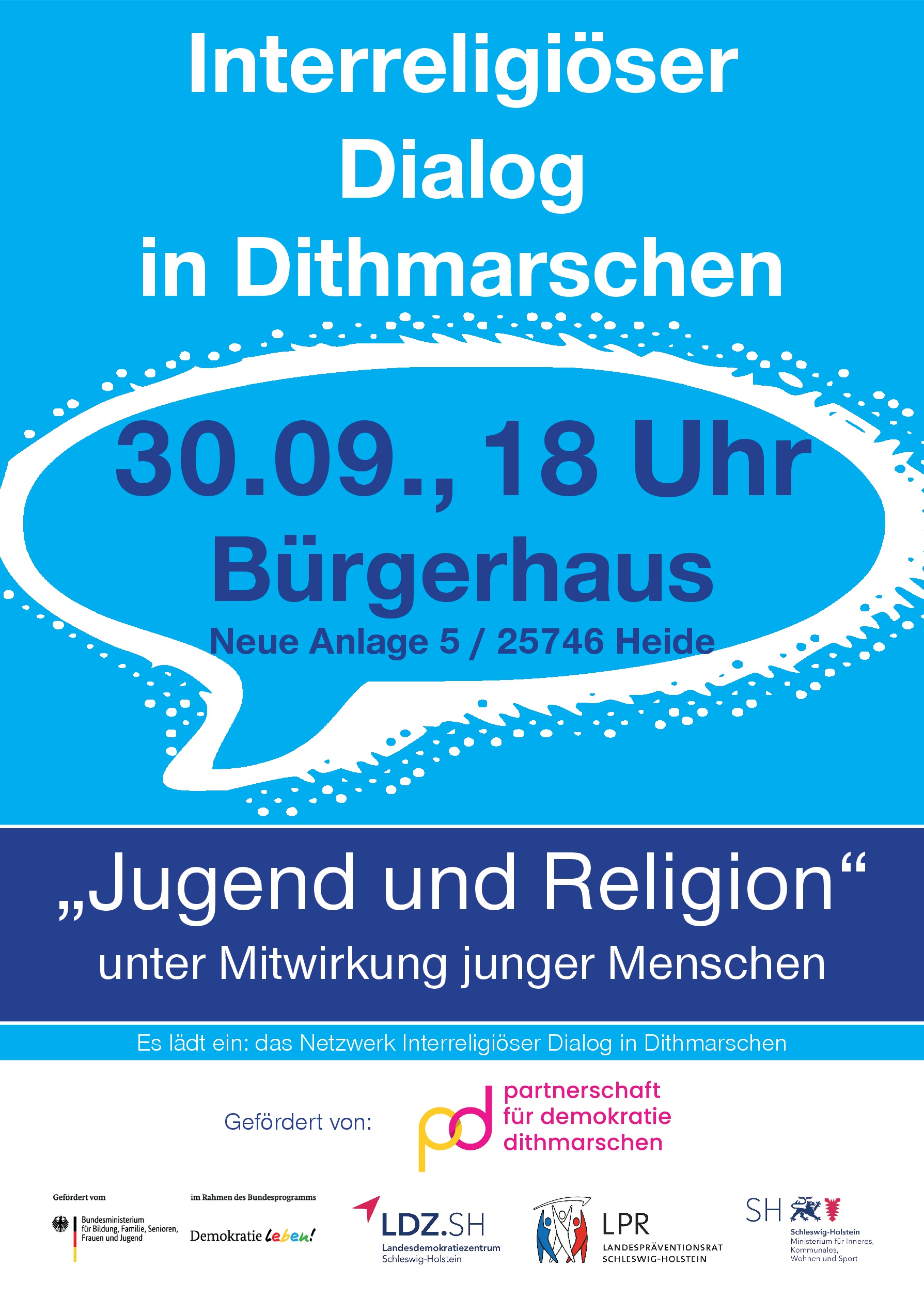Am 22. September trafen sich Vertreter*innen verschiedener Religionen an einem Tisch zum Dialog im Bürgerhaus in Heide. Aus „Judentum, Islam, Christentum und Bahai“ wurden verschiedene Feste und Feiertage vorgestellt. Der Festkreis im Jahresverlauf der jeweiligen Religion wurde beschrieben. Interessant war dabei auch, dass alle Religionen unterschiedliche Zeitrechnungen haben.