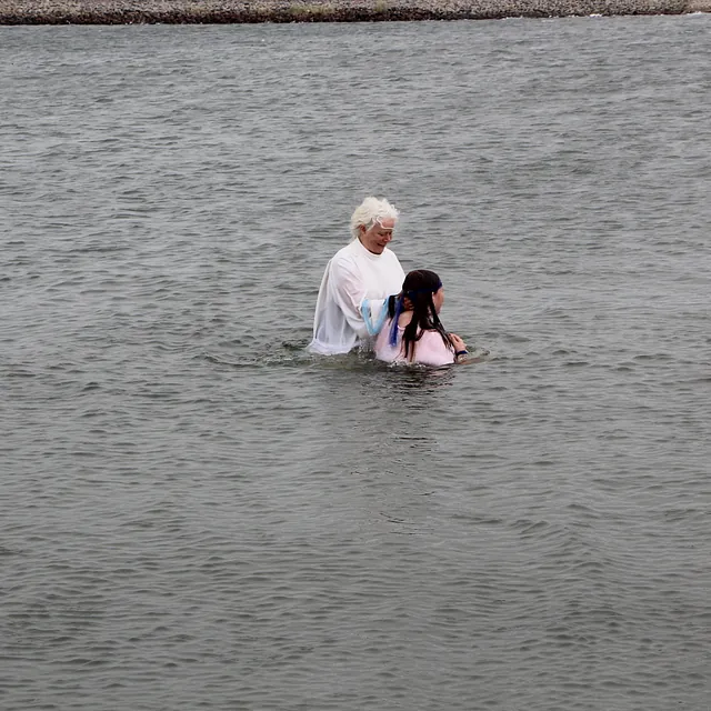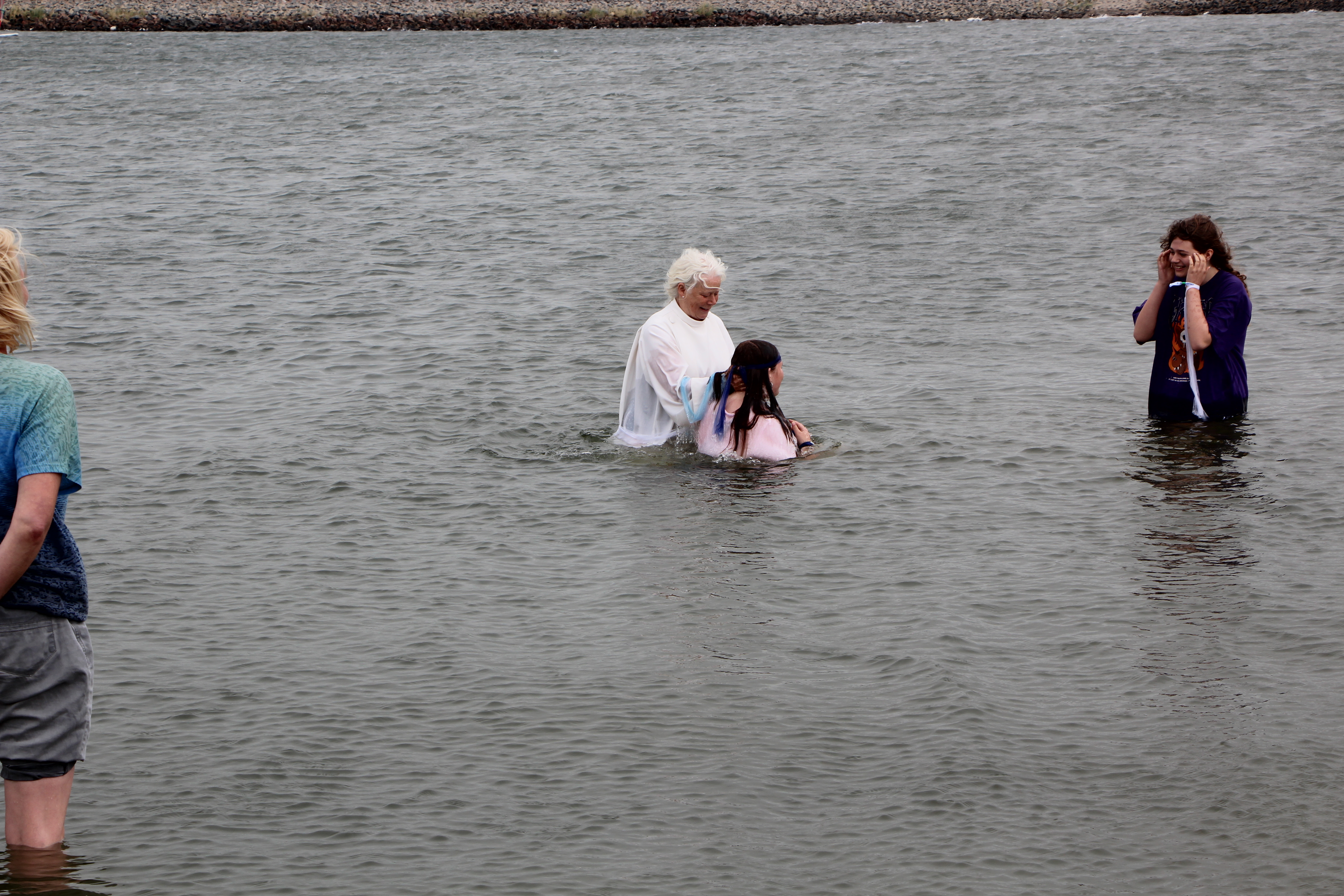 Ganzkörpertaufe im Wasser oder „klassisch“ am mobilen Taufbecken am Wasser.